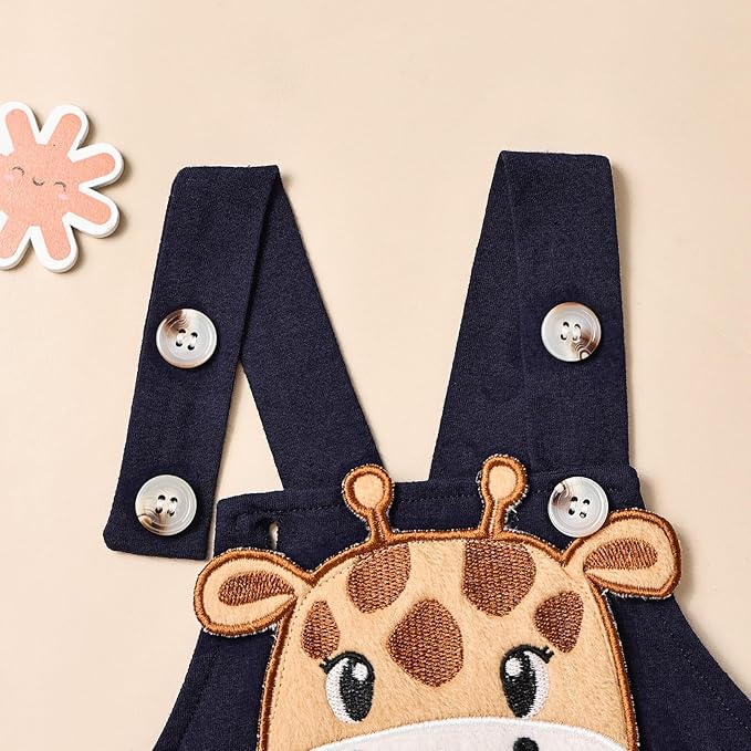 - Heartwarming and Convenient Design: Our baby boy clothes feature strategically placed snap closures at the crotch and collar, ensuring effortless dressing and easy diaper changes. The suspenders pants are equipped with two adjustable buttons, allowing for customized length and making them an ideal choice for your growing little baby. The suspender pants feature two cute back pockets, offering a practical and adorable storage solution for small toys or items.