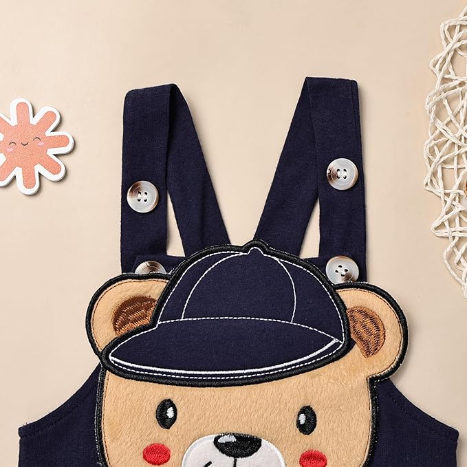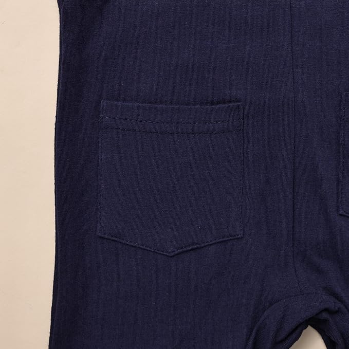 - Heartwarming and Convenient Design: Our baby boy clothes feature strategically placed snap closures at the crotch and collar, ensuring effortless dressing and easy diaper changes. The suspenders pants are equipped with two adjustable buttons, allowing for customized length and making them an ideal choice for your growing little baby. The suspender pants feature two cute back pockets, offering a practical and adorable storage solution for small toys or items.