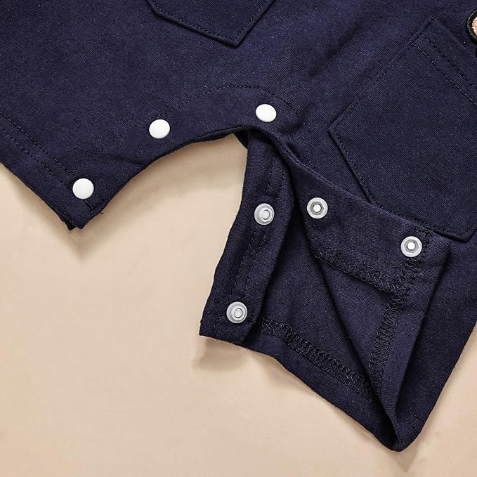 • Heartwarming and Convenient Design: Our baby boy clothes feature strategically placed snap closures at the crotch and collar, ensuring effortless dressing and easy diaper changes. The suspenders pants are equipped with two adjustable buttons, allowing for customized length and making them an ideal choice for your growing little baby. The suspender pants feature two cute back pockets, offering a practical and adorable storage solution for small toys or items.