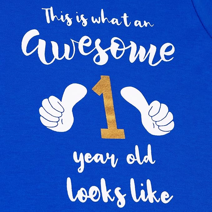 - Milestone Baby Bodysuit Set: Celebrate first birthdays with a cotton Outfit featuring "Awesome 1-Year-Old" design. Suitable for casual wear, photo sessions, or family activities. Sizes available for infants 0-24 months.