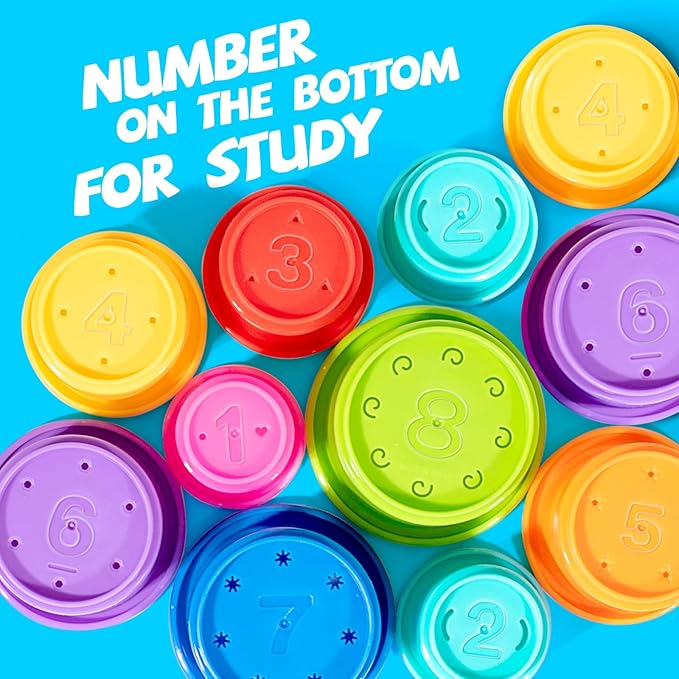 - Come with 12 pcs no hole bath toys, 8 pcs baby stacking cups