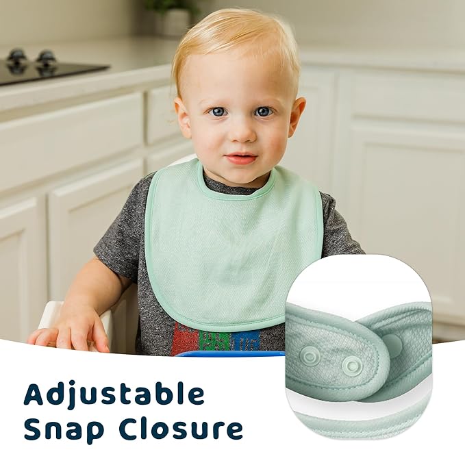 - PARENT-FOCUSED CONVENIENCE:Snap-closure bibs secure active 6-12M infants during messy baby-led weaning. Machine washable fabric softens with each wash, staying durable yet gentle on skin. Compact for diaper bags yet daycare essentials. OEKO-TEX certified safety makes them ideal baby shower gifts blending practicality with modern parenting needs.