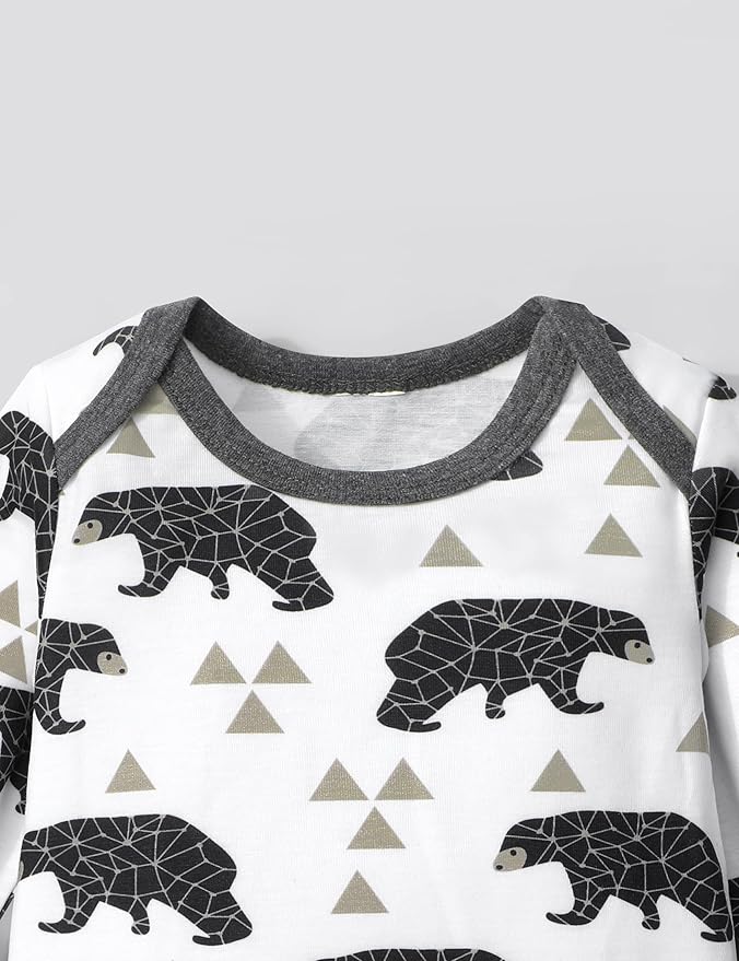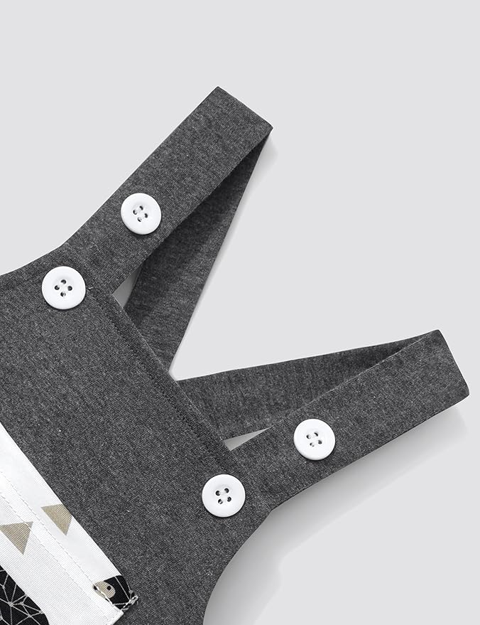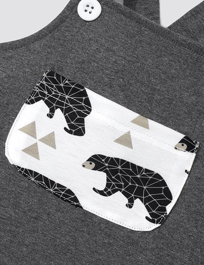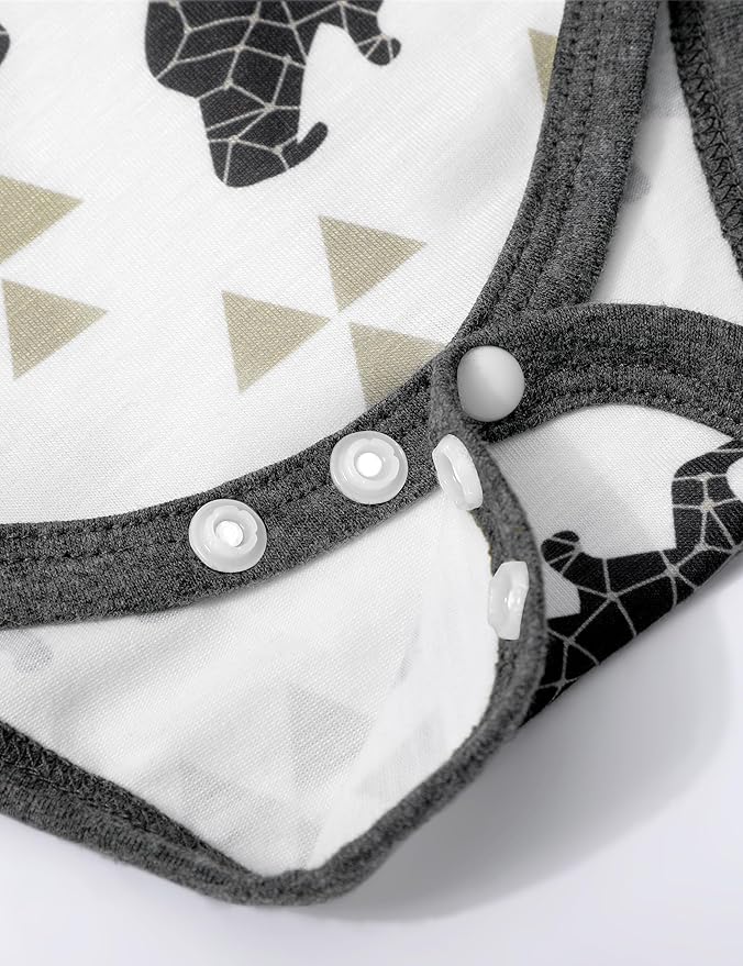 - đ°ăCute DesignăThe baby boy outfits features expandable shoulders, bringing more stretching space for the baby. The snap design in the crotch is convenient for mom to change clothes and diapers for the baby. Animal print and plaid patterns keep your baby boy looking super cute.