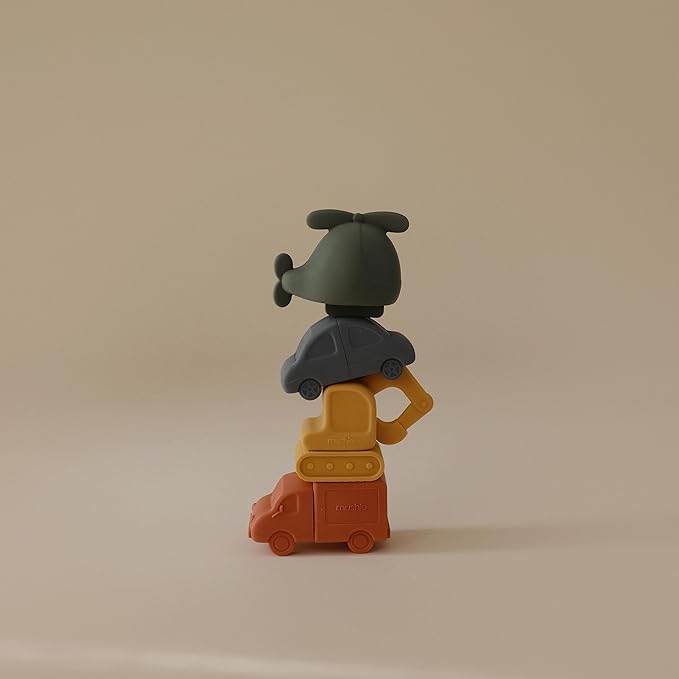 mushie Vehicles Bath Toys Play Set for Toddlers | 100% Food Grade Silicone | Mold Free, Pack of 4