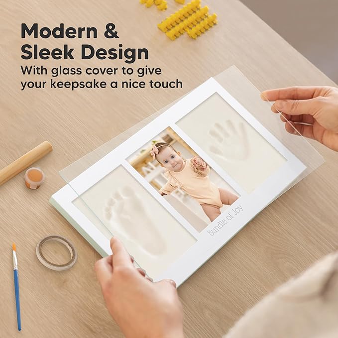 - Sturdy Wood Frame, Real Glass Cover - Our baby handprint footprint keepsake kit maintains its pristine condition for years to come. It’s a lovely, everlasting newborn keepsake for your baby room decor. A must-have newborn baby essentials.