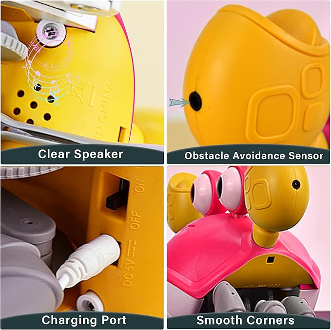 - The baby wants to crawl:when 6 to 12 months old little one sees the crab moving sideways back and forth, they are so excited that they move forward on their hands and knees to catch it, but when they stretch out their hands to catch, the crab will run away in the opposite direction,because of the obstacle avoidance sensor. This greatly encourages the baby to crawl