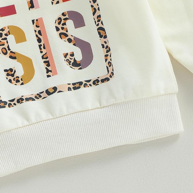 - Feature: Big sister little sister matching outfits: Pull-on closure, long sleeves, round neck, leopard letter print, loose fit, ribbed cuffs, basic length.