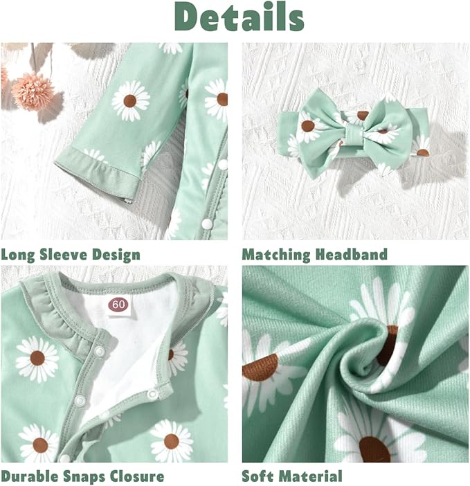 - ✔ UNIQUE DESIGN : Aalizzwell classic crew neck romper with different colors. Easy diaper changing with snaps closure. Vintage ruffle sleeve & patchwork design. Matching accessories are included. Different style to choose, it looks especially cute! Every detail is designed for the newborns, giving baby free space to grow up.