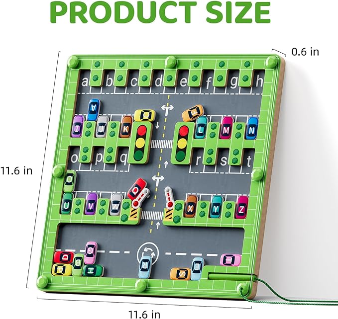 - 【Magnetic Toddler Games】Our sturdy magnet maze features built-in “parking spaces” for each letter of the alphabet. It includes colorful magnetic cars that correspond to each letter, helping kids recognize and match letters while improving their fine motor skills.