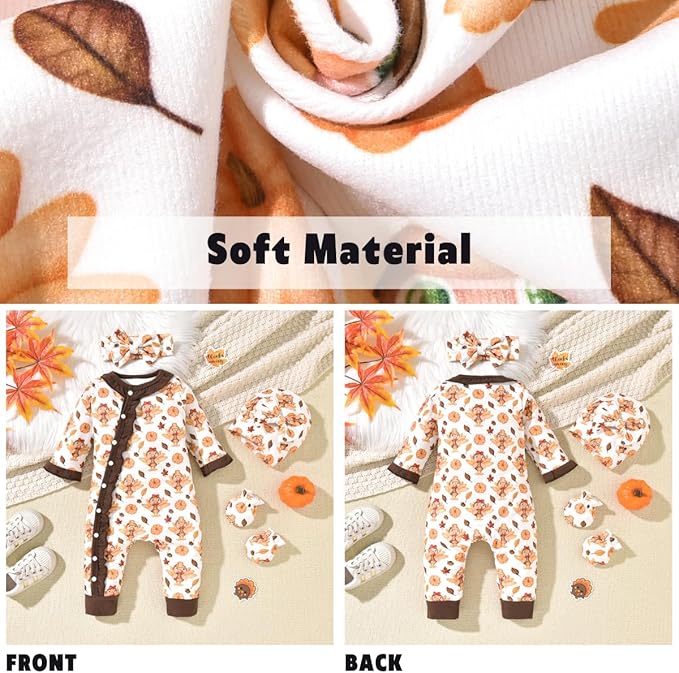 - PREMIUM COTTON MATERIAL: Crafted in soft cotton blend material, high absorbent and breathable, cozy feel of this baby clothing to keep little baby cool and comfy all autumn, spring & winter. Are you ready to wrap your little baby up in this cute baby girls Thanksgiving clothes set?