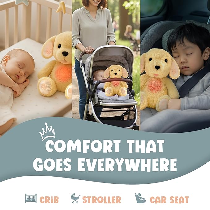 - MORE THAN JUST A SOOTHER: More than a sound machine, this plush puppy for baby is also a cuddly companion. Its portable design makes it ideal beyond bedtime—whether in the crib, stroller, or car seat for soothing comfort anywhere.