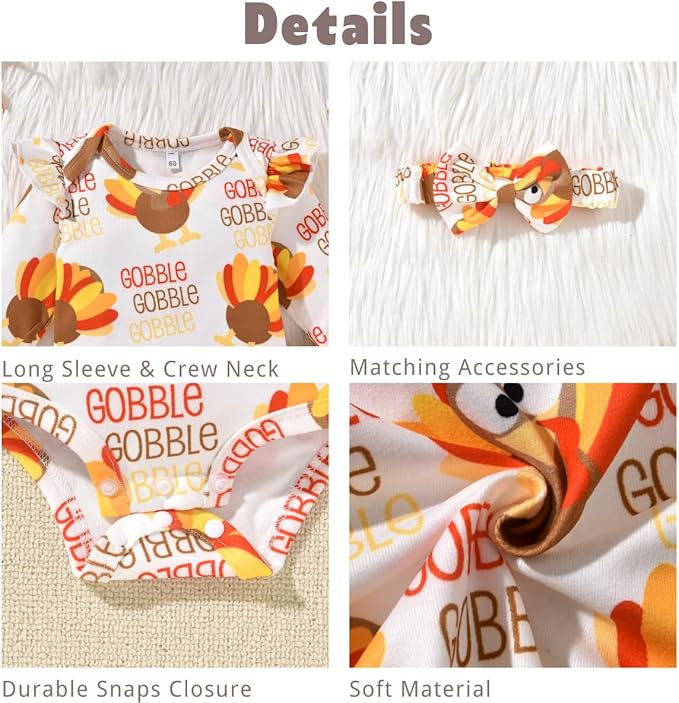• IDEAL GIFT FOR BABY : This is really eye-catching when your little baby wearing this sweet outfits, this baby girl outfit is not only fit for daily dress but also perfect for many special occasions, such as babies first Thanksgiving clothes gift, party wear for Thanksgiving, a gift for fall winter Thanksgiving baby shower, baby coming home outfit, Thanksgiving photo shoot and so on!