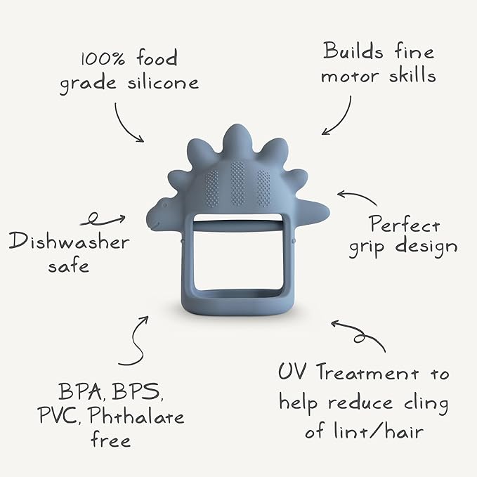 mushie Silicone Baby No-Drop Dino Teether Toy