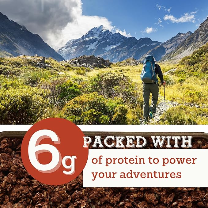 - 6 GRAMS OF PROTEIN in every serving. Power your adventures with sustained energy from whole, real food ingredients. Our granola makes a perfect backpack snack, smoothie bowl topper, organic breakfast cereal, granola for milk, or granola for yogurt.