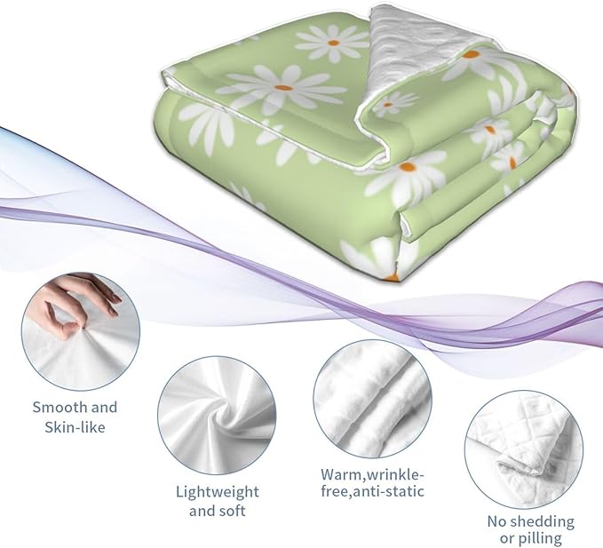 Baby Blanket Little Flower Daisy Green for Boy Girl Newborn 30x40 Inch Toddler Infant Nursery Throw Blankets Double Layer Comfy Soft Plush Stroller Crib Quilt
