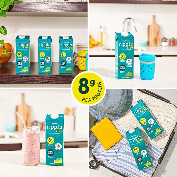 Ripple Plant Based Milk | 8g of Pea Protein | Shelf Stable | Vegan & Non GMO | Dairy, Soy, Nut, Gluten, & Lactose Free ((Pack of 6), Kids Original)
