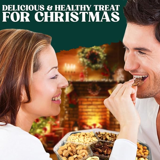 - PACKED WITH FRESH, FLAVORFUL, NUTRITIOUS NUTS: Gift Basket - This dried nut care package is going to be a massive hit. This 7 section platter contains a variety of mouthwatering nuts; all beautifully presented in a high-end gift box.