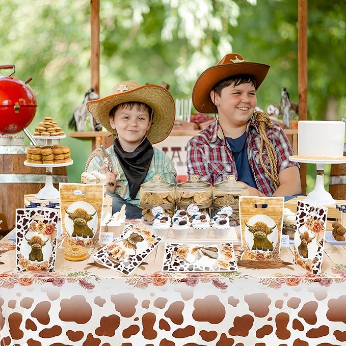 Highland Cow Party Favor Bags - 50Pcs Brown Cow Print Goody Candy Treat Gifts Bags, Highland Cattle Themed Party Decorations for Kids Birthday Baby Shower Animals Theme Events Supplies