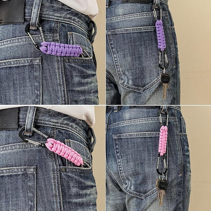 BRAVESHINE Paracord Keychain Carabiner Clip, D Ring Lanyard Hanger Stroller Hook for Water Bottle, Key, Backpacks, Men, Women