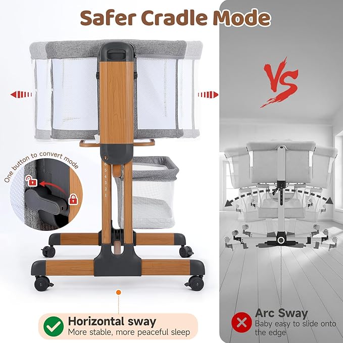 - 【3-in-1 Rocking Bassinet for Baby】 Transition seamlessly from a soothing rocking bassinet to a stationary crib or bedside co-sleeper. The 3-in-1 rocking bassinet is designed to adapt to your family’s needs while providing both comfort and security for your little one