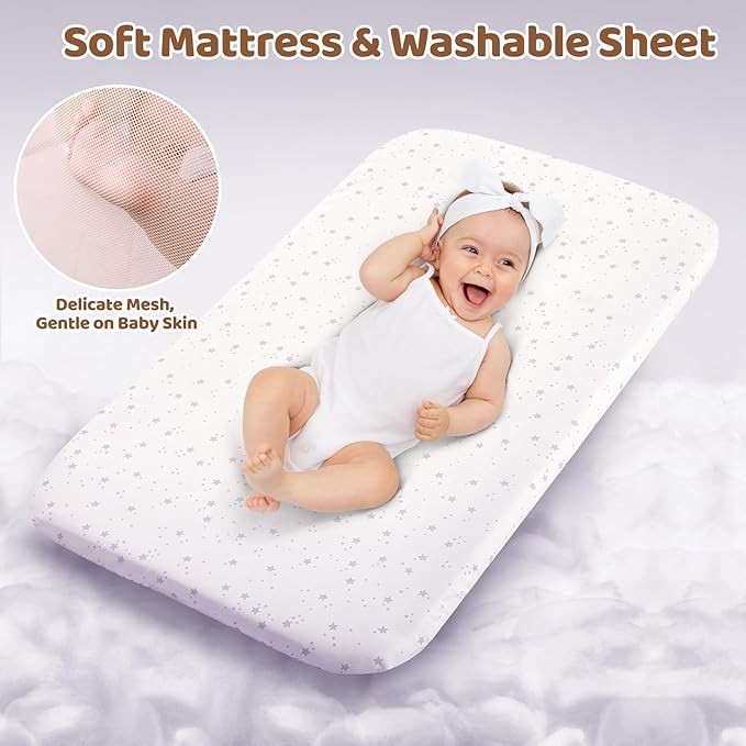 - 【CPSC Certified Safety】Crafted with high-quality, soft, breathable fabric and stable structure, the baby bassinet meets the highest safety standards. The sturdy base ensures stability, giving you peace of mind while your baby sleeps