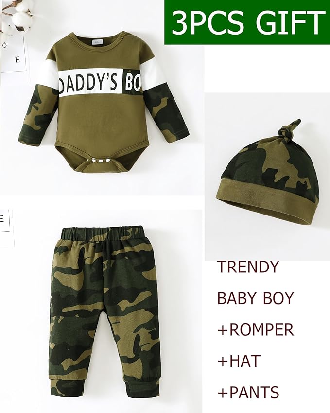 - Cool Baby Boy Outfit Design : A "Daddy's Boy" letter printed outfit can definitely add a special touch to your baby boy's style. Here's a cool baby boy outfit design.Elastic waistband soft pants make for easy dressing and bring convenience for movement. Newborn boy romper top with button opening for easy wear.