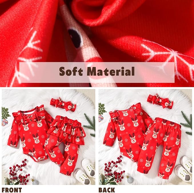 • ✔ PREMIUM COTTON MATERIAL : Crafted in soft ribbed cotton blend material, high absorbent and breathable, cozy feel of this baby clothing to keep little baby warm and comfy all spring, fall & winter. Are you ready to wrap your little princess up in this cute baby girl Christmas outfit?