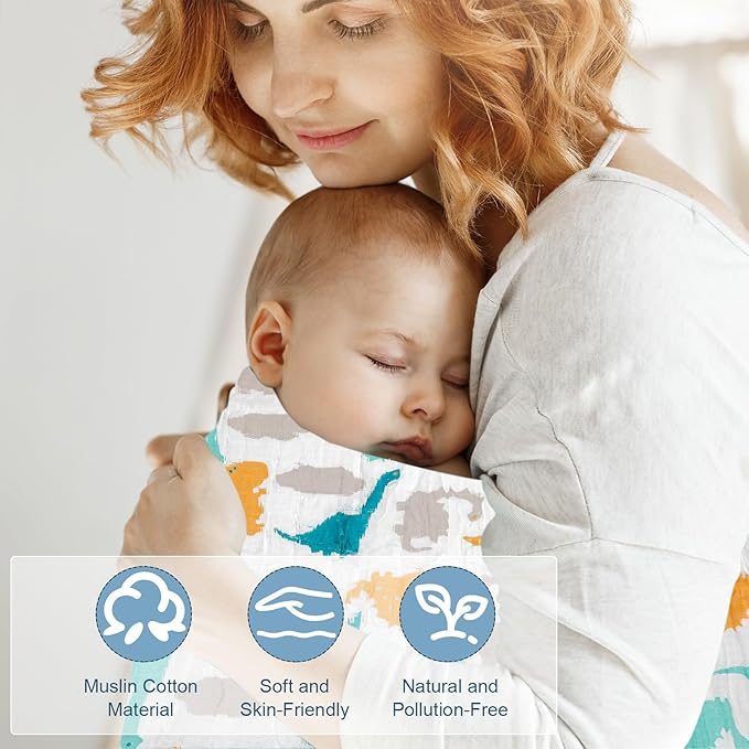- 【COLORFUL DINOSAUR MUSLIN BLANKET】 Our muslin swaddle blankets are made of 100% cotton (muslin) to care for your baby's delicate skin. At 47" X 43'' (120 x 110 cm), it's big enough to be used as a cuddle blanket, nursing cover, stroller sunshade, burp cloth, car seat cover, play mat, diaper changing pad, mini crib sheet and more.