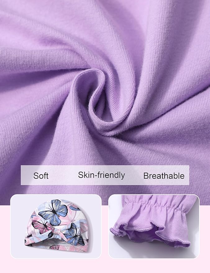 - 💜🦋Soft Material: AGAPENG newborn girl clothes is made of cotton. It is soft and skin-friendly, breathable, lightweight and elastic. Your baby can stretch freely, sleep comfortably and play relaxed. Your sweet baby will be the most shining princess in the audience.