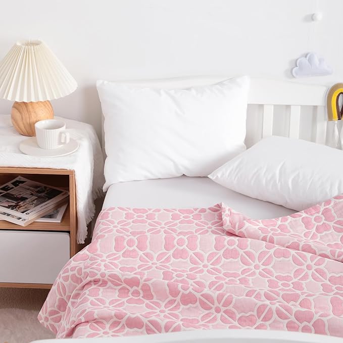 NTBAY 3 Layer Toddler Blanket, Muslin Cotton Jacquard Bed Blankets, Lightweight Thermal Baby Blanket, Super Soft and Warm Crib Blanket for All Seasons, Decoration Gift, 30"x40", Pink Clover