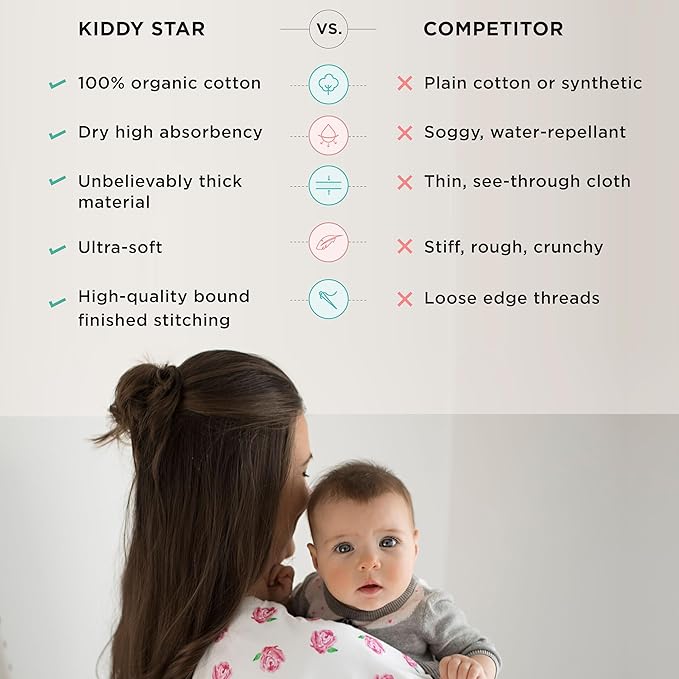- ๐ฟ 100% Organic Cotton โ Pure Comfort for Baby ๐ฟ Crafted from natural cotton, these burp cloths are soft, breathable, and gentle on even the most sensitive skin. Free from all harmful substances, they offer peace of mind for parents and pure comfort for little ones.