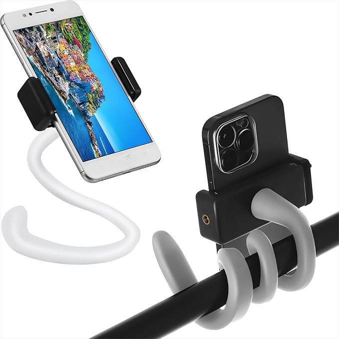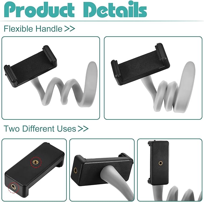 - Versatile Uses: the cell phone stroller clip with flexible handle can attach to strollers, shopping carts, bikes, belly bar, hand bars and so on, and the handle can be adjusted to any angle with 360 degree rotation