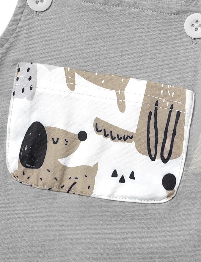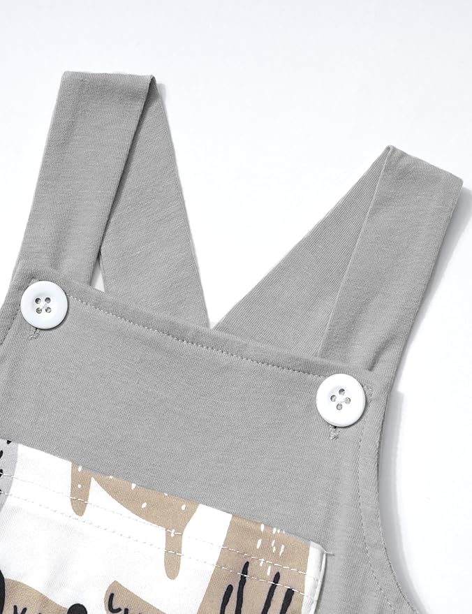 - đ°ăCute DesignăThe baby boy outfits features expandable shoulders, bringing more stretching space for the baby. The snap design in the crotch is convenient for mom to change clothes and diapers for the baby. Animal print and plaid patterns keep your baby boy looking super cute.