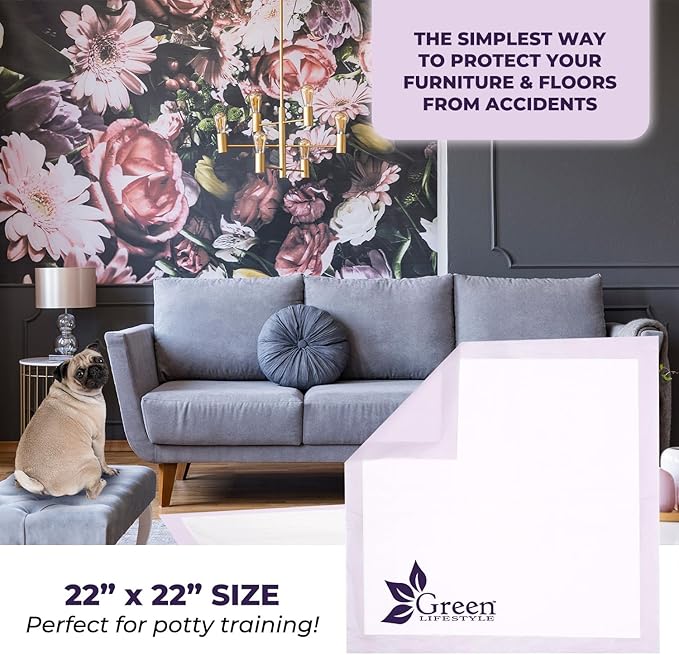 GREEN LIFESTYLE Pee Pads - Super Absorbent & Leak-Proof Pee Pads for Dogs - Puppy Pads - Waterproof Dog Pads, Lavender Scented Dog Training Pads for Cats, Rabbits (Pack of 80 - 22x22)