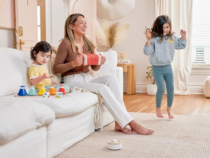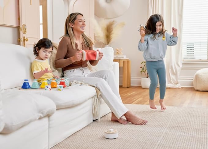 - HOURS OF MUSICAL FUN: A thoughtfully crafted toddler music toy set including: Pentatonic Pat Bells, Color Tab Pan Flute, Loud & Quiet Stackable Shakers, Jingle Bracelet, Animal Metronome, Simple Concertina, Rhythm & Songs Book, and a Lovevery Play Guide with activity ideas and parent guidance.