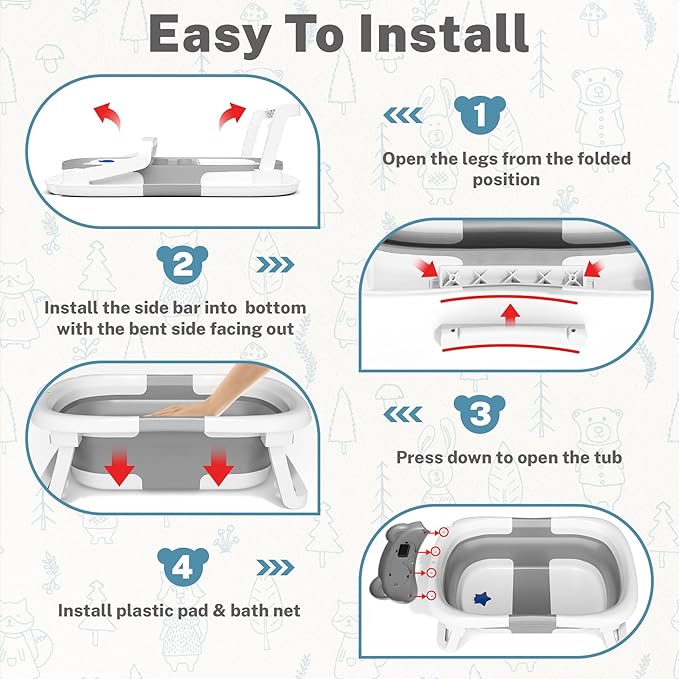 - Foldable & Space-Saving: This baby tub is easy to fold, store, and clean, fitting effortlessly into your bathroom, travel bags, or outdoor activities, making bath time a breeze wherever you go