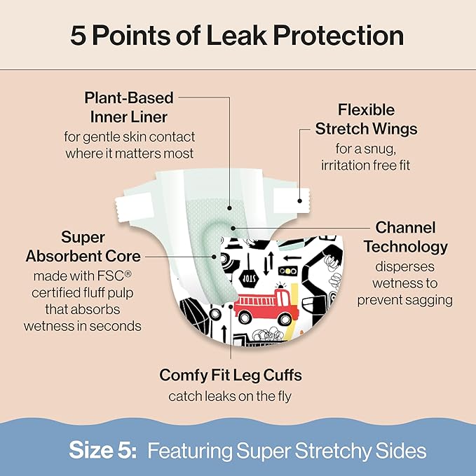 - OUR BEST FIT YET: Designed to move with your baby, Honest Clean Conscious Diapers feature comfy fit leg cuffs to catch leaks on the fly and flexible, stretchy wings that provide a snug, irritation-free fit. The super cute prints are an added bonus