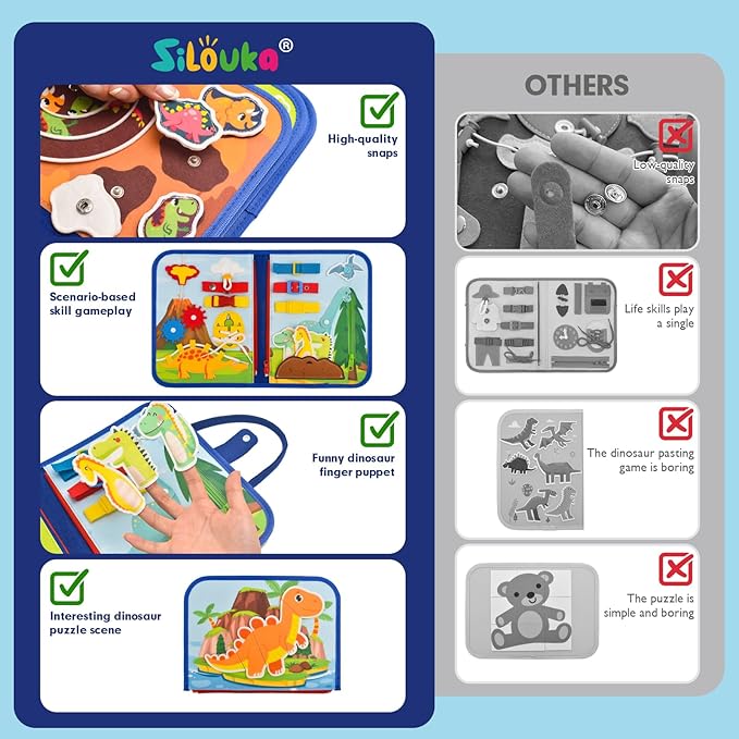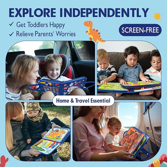 Busy Board Montessori Toys for Toddlers 1 2 3 4 Years Old, Busy Book for Toddlers 1-3 to Develop Fine Motor Skills, Travel Educational Gift for Boys (Dinosaur)