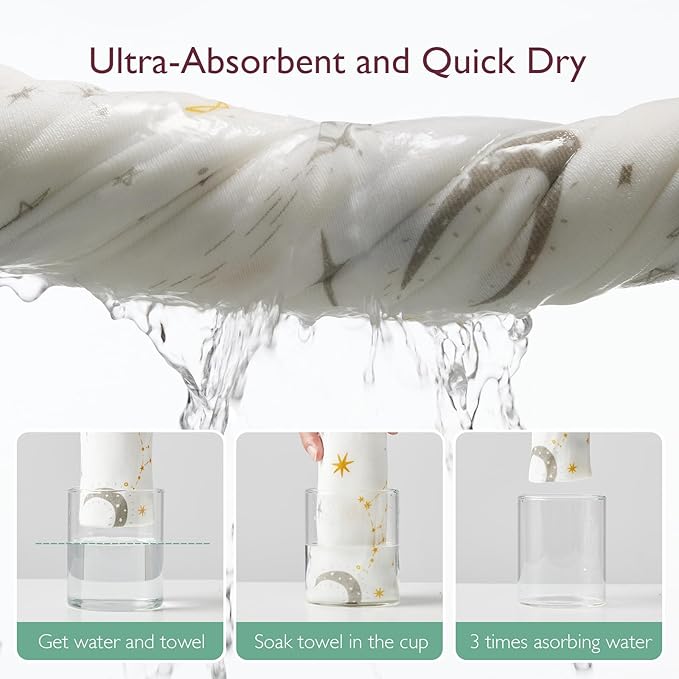 - [ Cute Unisex Baby Towels ] Momcozy baby towels with hooded feature gender-neutral colors and incorporate different design elements such as Starry Sky, Ink Wash Leaves, and Lemon Leaves to create classic and adorable patterns that bring a delightful experience for baby
