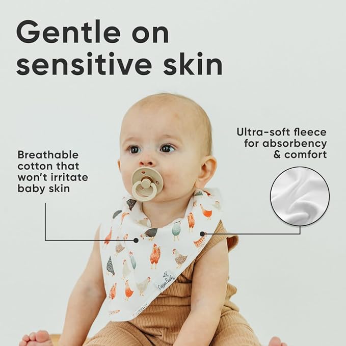 - MAXIMUM ABSORPTION: Fronted by ultra-soft Organic Cotton and lined with water-resistant polyester fleece to provide an extra layer of absorbency. Each bib is crafted with dual-layer protection against heavy drooling or spit-up, keeping your baby dry and comfortable.