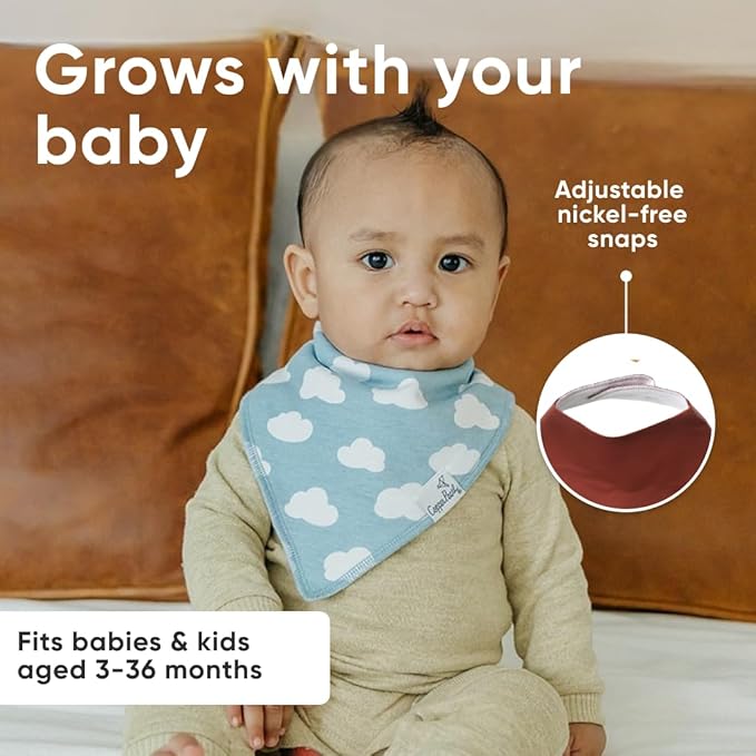 - GROWS WITH YOUR BABY: Each bib features two adjustable nickel-free snaps, allowing for a perfect fit from newborn through toddlerhood (3–36 months).