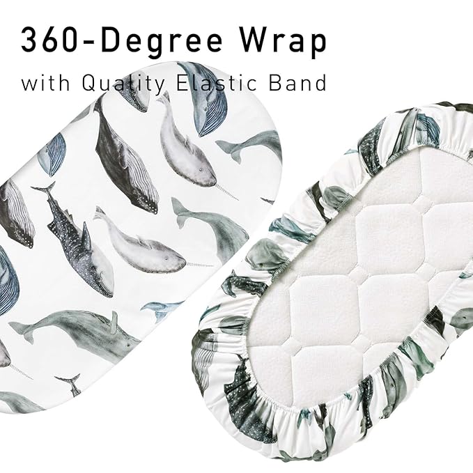 - SUPER SOFT FABRIC: Our baby bedding bassinet sheets are made of soft and breathable fabric that best fits the standard bassinet crib. The elastic band surrounds the mattress, so mothers will not worry that it will slip away, creating a comfortable and stable sleeping space for the baby. Rest assured, every product meets the OEKO-TEX Standard 100 and is safe for babies