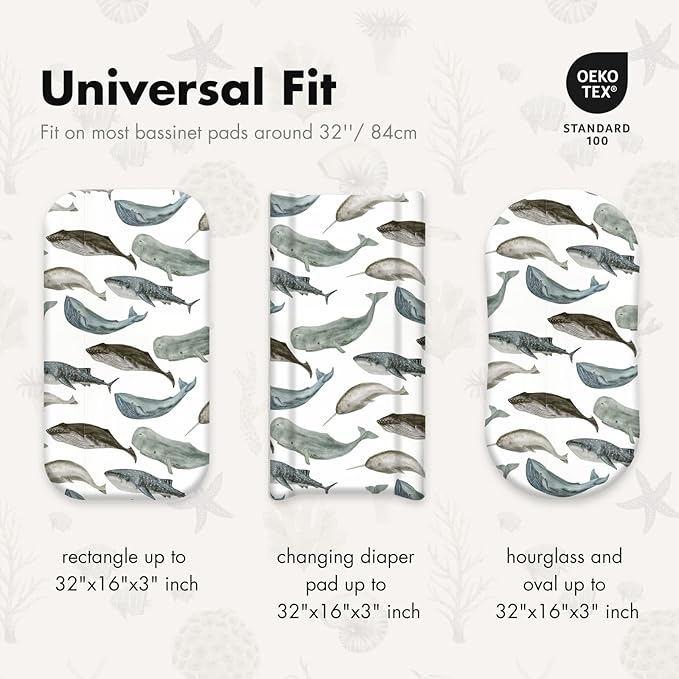 - ONE SIZE FITS ALL (32"X16"X3"): Classic universal size. Not too big, not too small, smooth and snug to fit almost all bassinets, loungers, cradles, and co-sleepers' standard, oval, round, rectangle, and hourglass-shaped mattresses