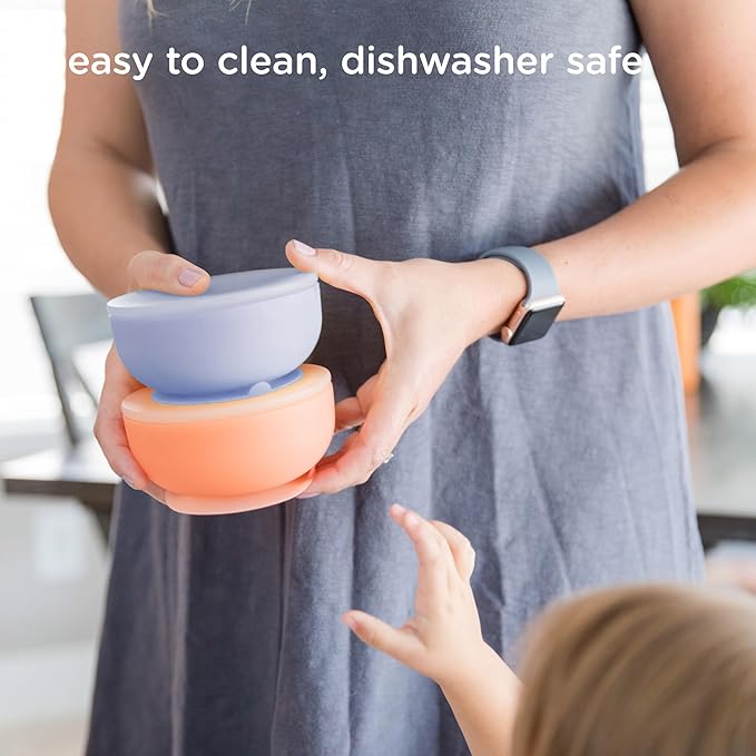 - GREAT FOR AGES 6 to 18 MONTHS: Our toddler bowl with lid is versatile. It is a suction bowl for independent feeding that sticks firmly to surfaces and reduce messy spillage during mealtime. The addition of the silicone lid turns it into a snack bowl for all occasions, whether at home or on the go.