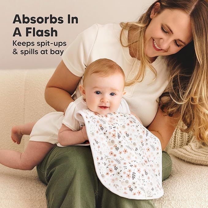 KeaBabies 4-Pack Baby Burp Cloths Baby Girl, Boy - Organic Cotton Burp Cloth, Extra Large, Absorbent, Soft Burping Cloths & Bibs Set for Babies, Newborn Burp Clothes, Thick Burp Rags (Sweet Charm)