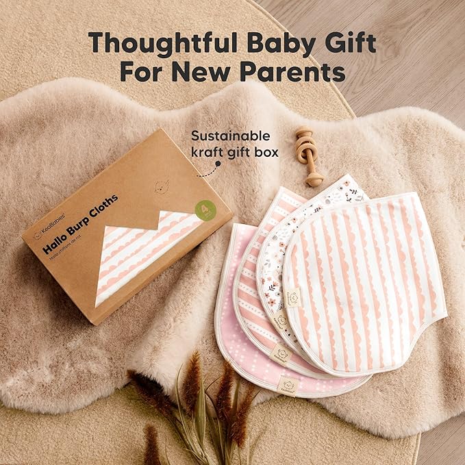 - Thoughtful Gift - Each pack of 4 burp cloths comes beautifully packaged in a kraft gift box. Pair the Hallo Burp Cloths with the Hallo Baby Bibs—perfect for any baby registry. Both are machine washable and dryer-friendly, ideal for busy parents.