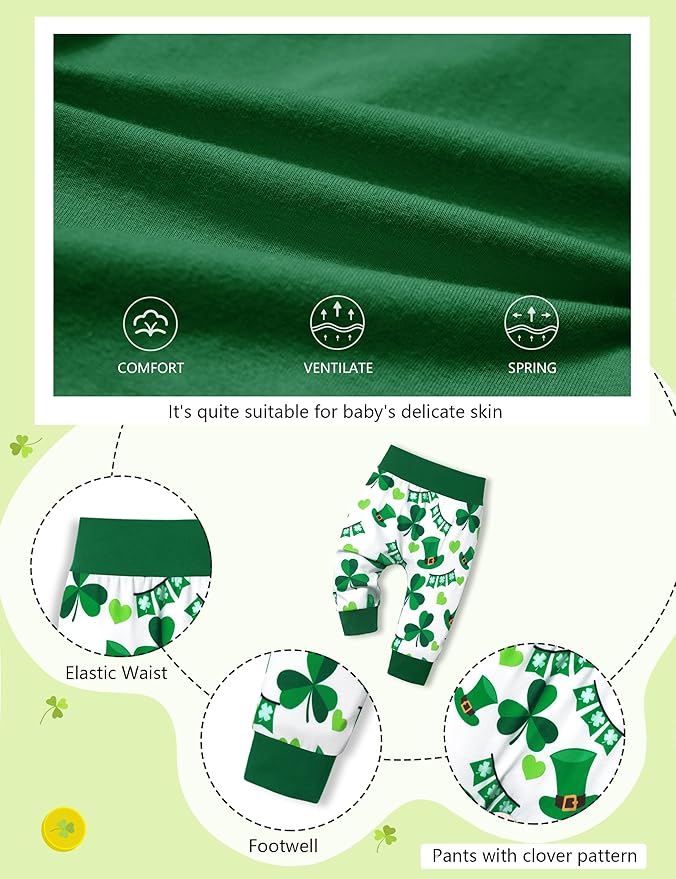 • ☘️Soft and high-quality materials: Made with soft and high-quality fabrics, this outfit ensures maximum comfort for your baby's sensitive skin. Your little one will feel cozy and snug throughout the day.
