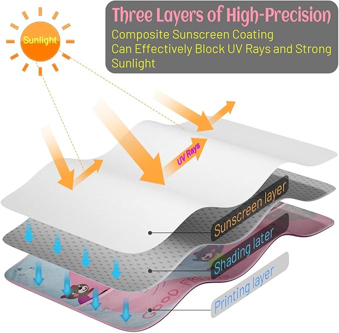 - Net Storage Pockets Designed for Children: Bright colors and cute cartoon patterns can attract children's attention and reduce crying,and makes them feel happy and joyful. Besides,this car sun shade is designed with net pockets, which can store small toys, milk bottles, water bottles, towels, snacks and other children's small items. Make it easier for you to travel with your children.