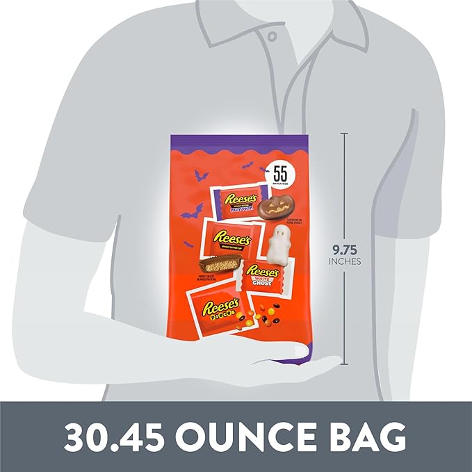 - Contains one (1) 30.45-ounce, 55-piece bag of REESE'S Assorted Flavored Snack Size Peanut Butter Candy