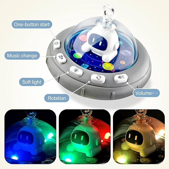 - Musical Baby Play Arch: Our baby stroller toy is an animal theme such as lovely rocket, spinning windmill, rotating plane and so on with multiple soft music accompanies your baby to sleep
